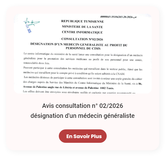 - Un à Tunis regroupant les médecins qui exercent dans les gouvernorats de Tunis, Ariana, Ben Arous, Manouba, Zaghouan, Bizerte et Nabeul.